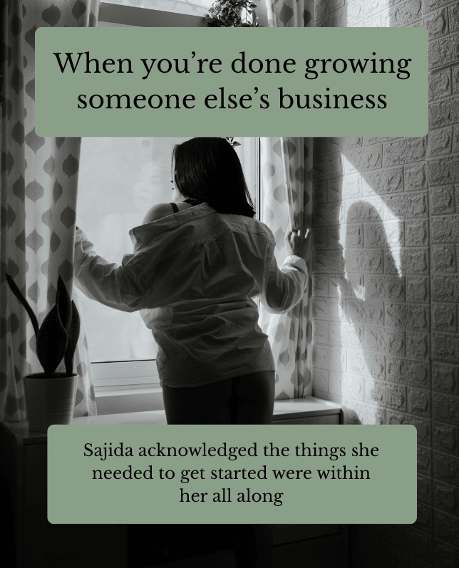 Her co-founder took on more of the consultant role within the duo, while Sajida dropped her consultant hat completely and embraced a different approach.